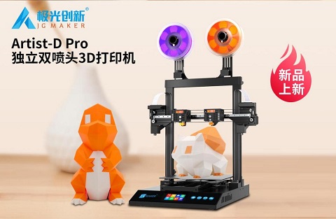 要發揮更多創意和DIY,非它莫屬:Artist-D pro是極光創新產品線中最年輕的一款產品,獨立式雙噴頭結構支持4種打印模式,雙噴頭可搭配出各種耗材結合玩法,支持代碼開源讓創意er盡情打造自己心目中的DIY好助手??觳饑婎^、柔性磁貼、補償調平等多項前沿功能的整合,讓這款機器免除了大部分使用過程中的繁瑣,小白和大神都能玩出花樣。