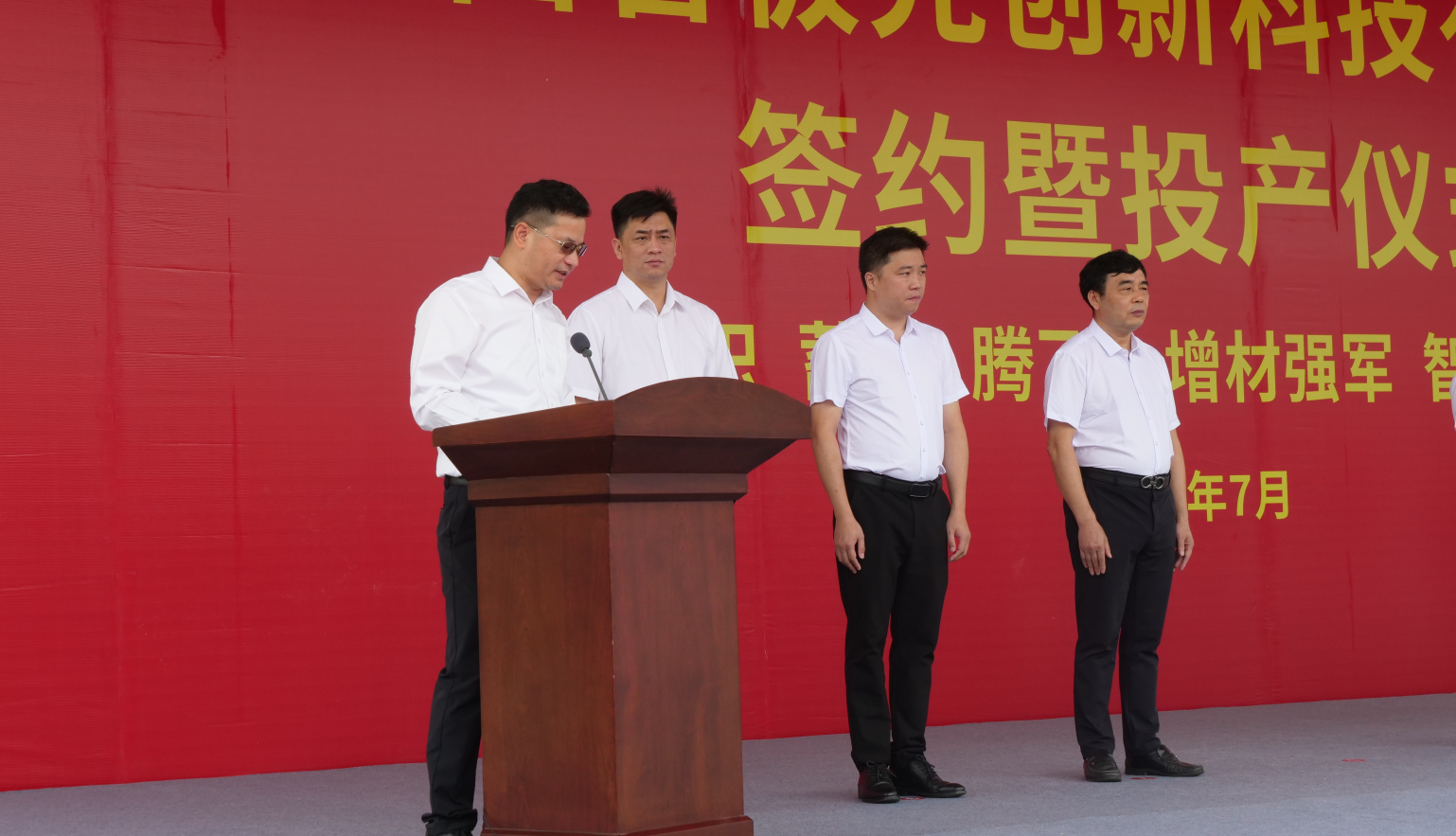 寧都縣縣委副書記、縣長何國杰宣布江西省極光創(chuàng)新科技有限公司正式開工投產(chǎn)