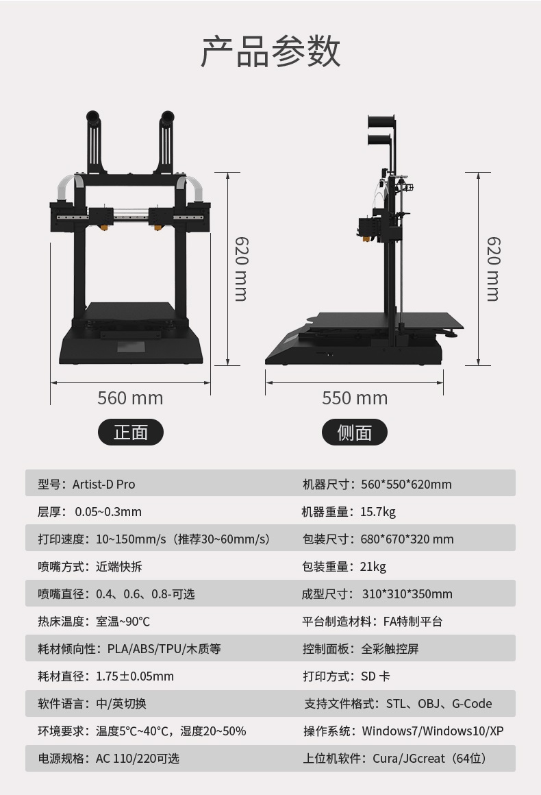 Artist-D Pro 雙噴頭3D打印機(jī)
